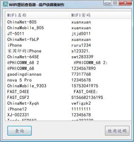 wifi密码查看器电脑版是一款免费的实用程序,用于恢复您丢失的网络无线密码,电脑wifi密码查看器是一款功能强大的网络宽带密码查看软件;若您之前使用过wifi伴侣等分享类连网神器,且想把密码分享出去过,wifi密码查看器分享工具可以帮您再次连入网络,解决您的问题;可是若没有用过,或者你更换的是iPhone、iPad,你需要再次连入就会比较麻烦。此时,使用【WIFI密码查看器】将是您的不二之选,您可以用它来找回之前连过的密码。